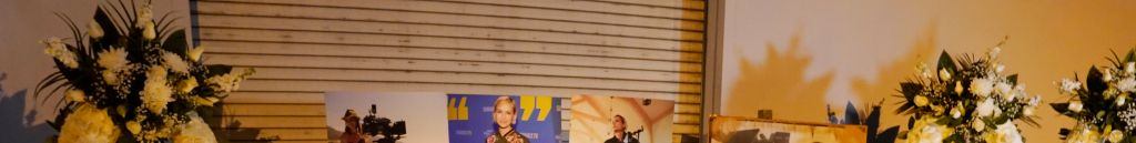 An image of the late cinematographer Halyna Hutchins is projected at top left at a candlelight vigil for her, Sunday, Oct. 24, 2021, in Burbank, Calif. A prop firearm discharged last Thursday by actor Alec Baldwin, while producing and starring in a Western movie in Santa Fe, N.M., killed Hutchins and wounded director Joel Souza.